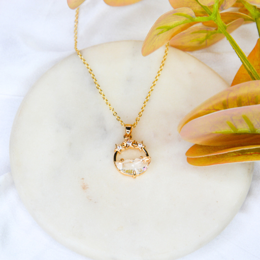 Dreamy and elegant, the Celestial Crescent Pendant Chain pairs a faceted half‑moon crystal with a star‑crowned frame for subtle celestial sparkle. Lightweight and easy to style from day to night.