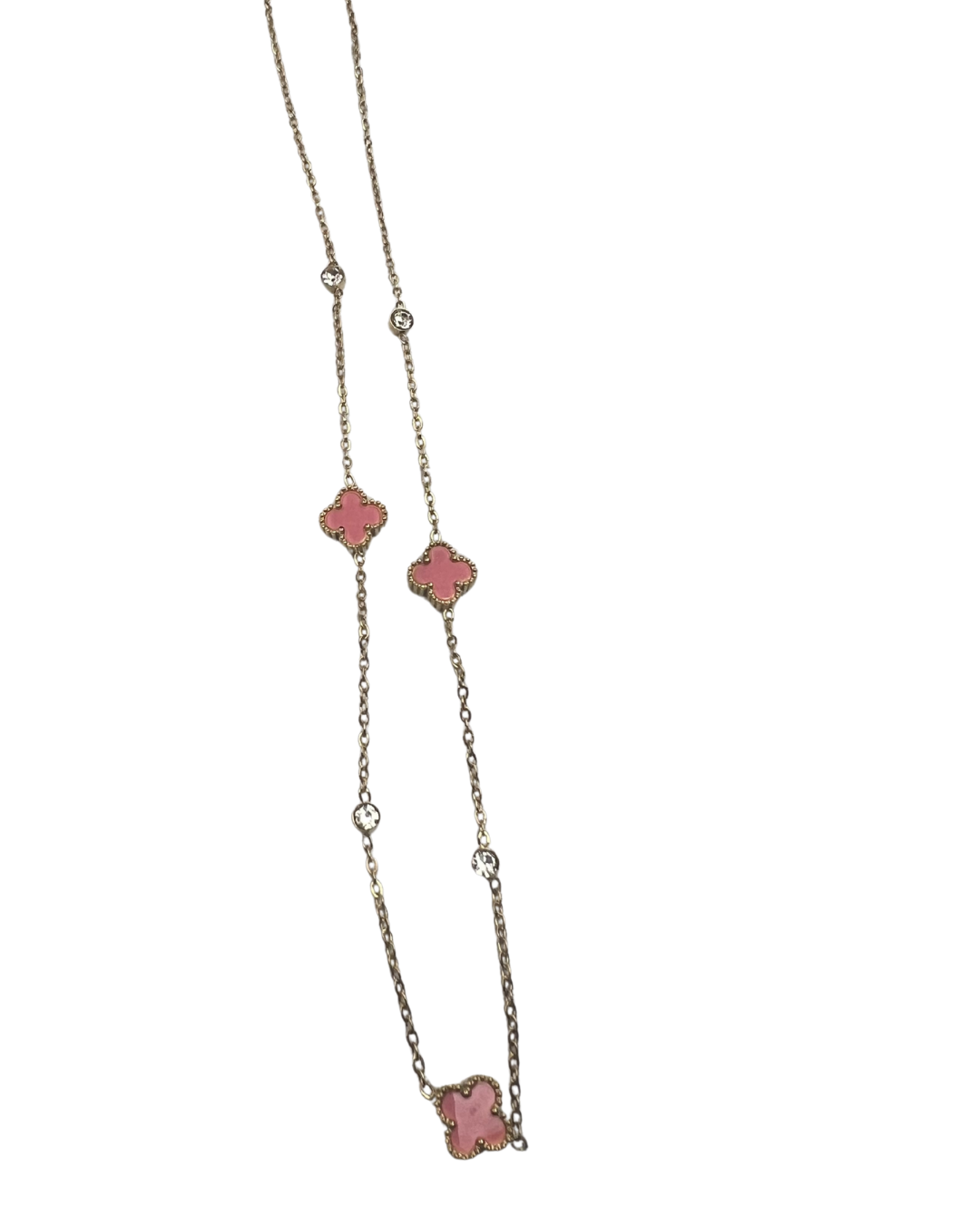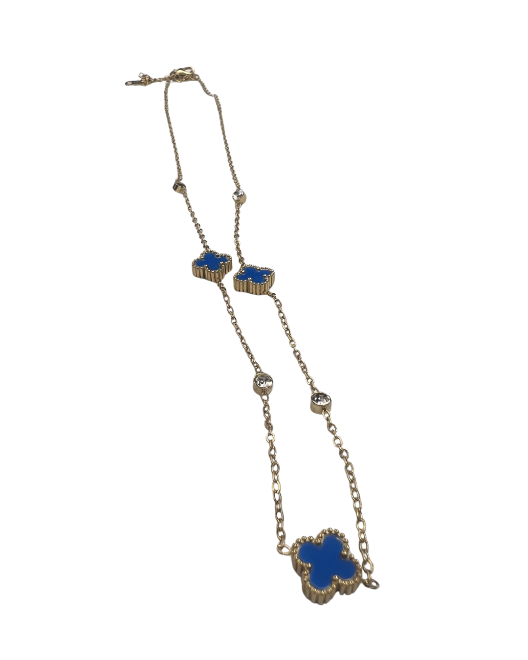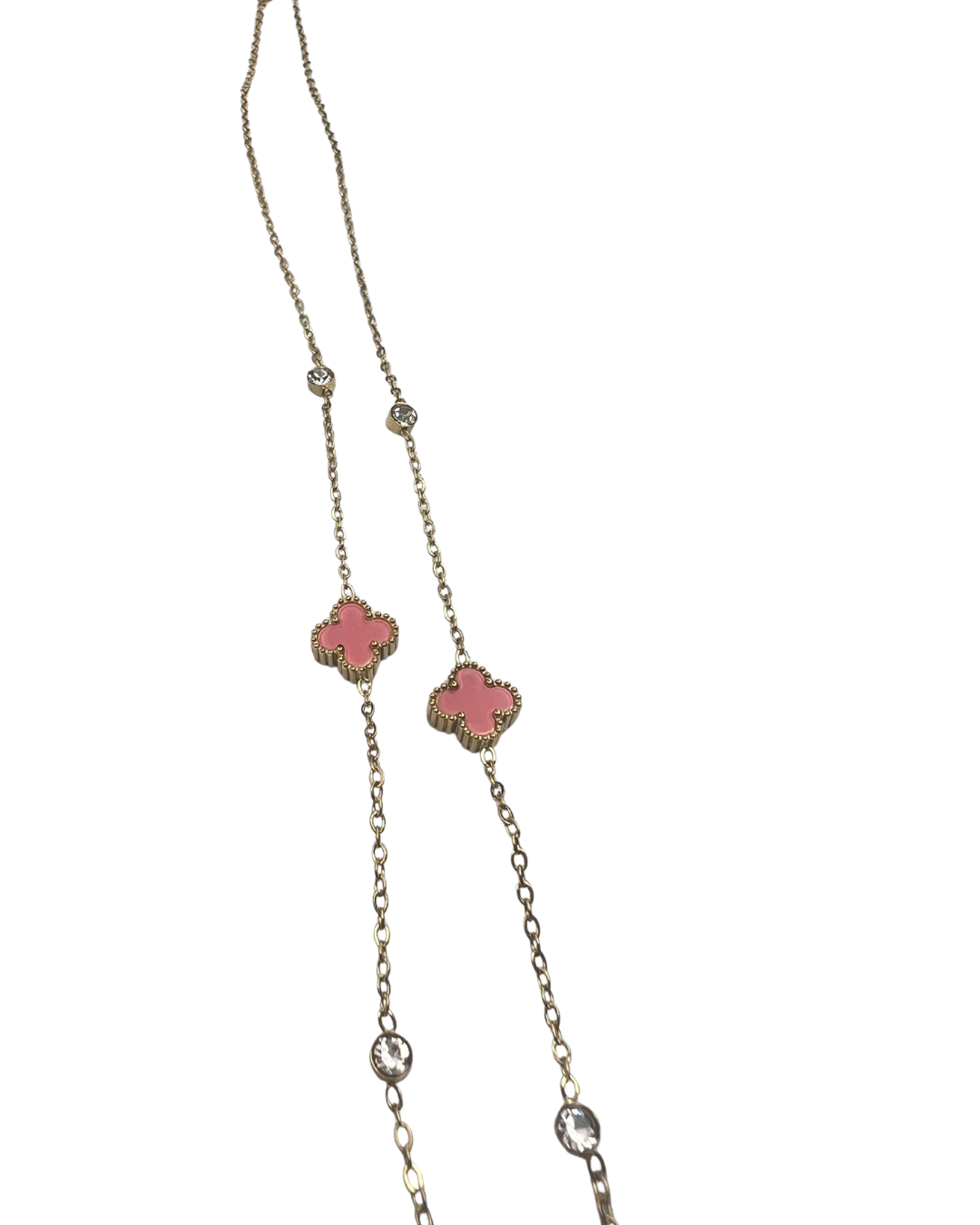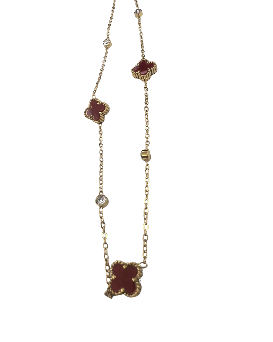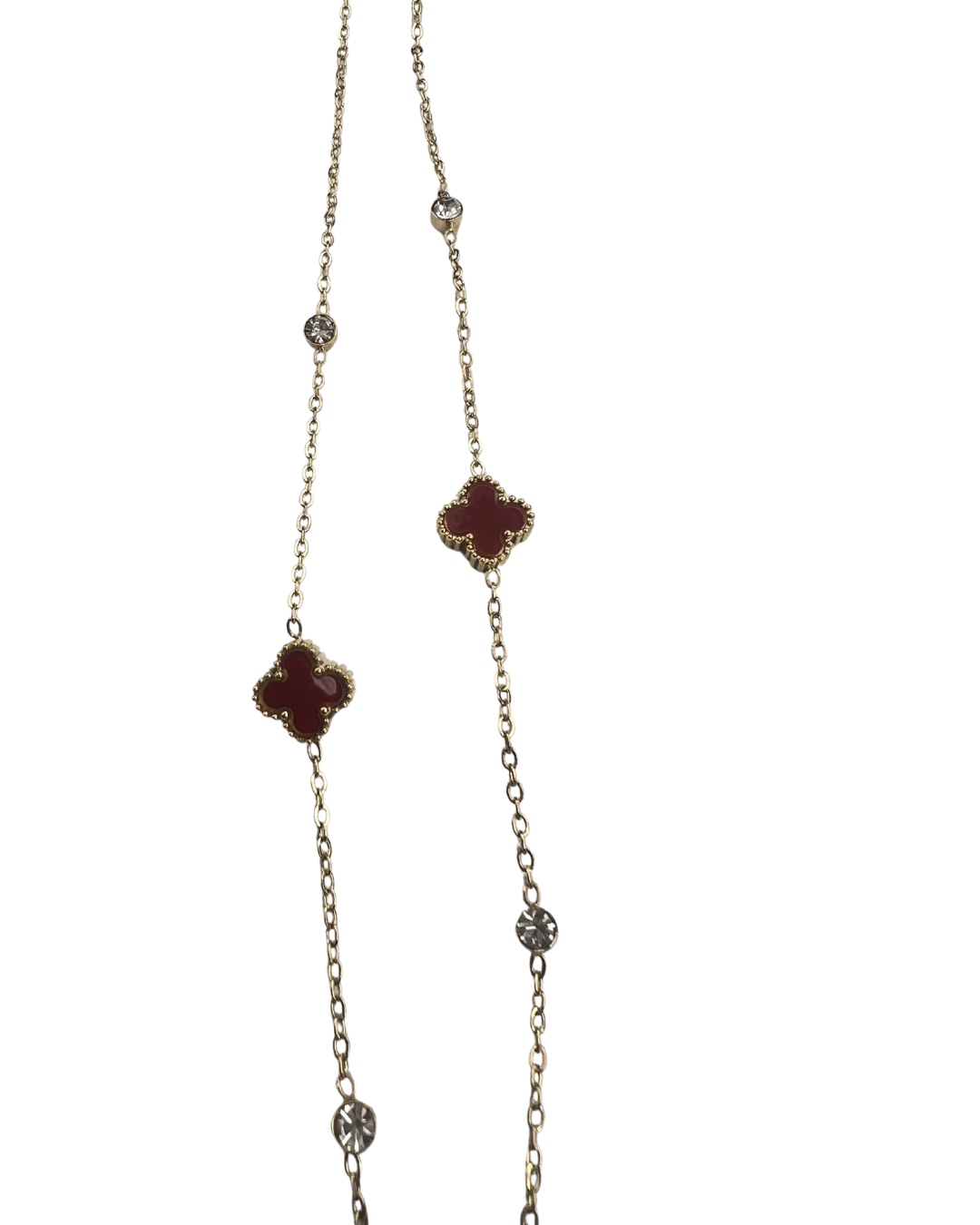 Elegant gold-tone chain necklace with clover-shaped pendant motifs in six unique color finishes.