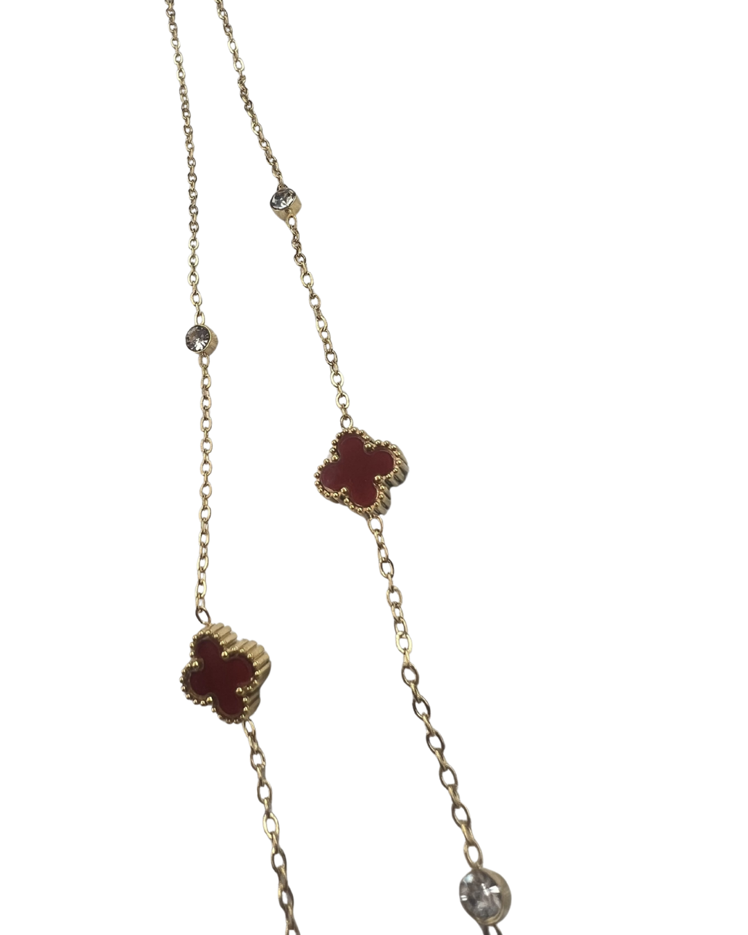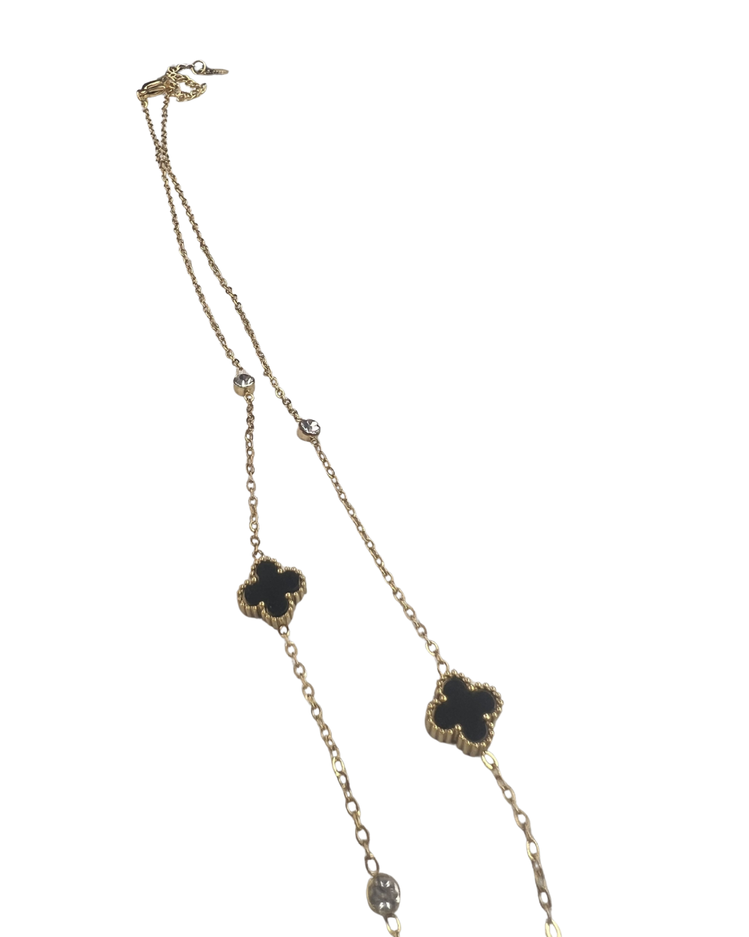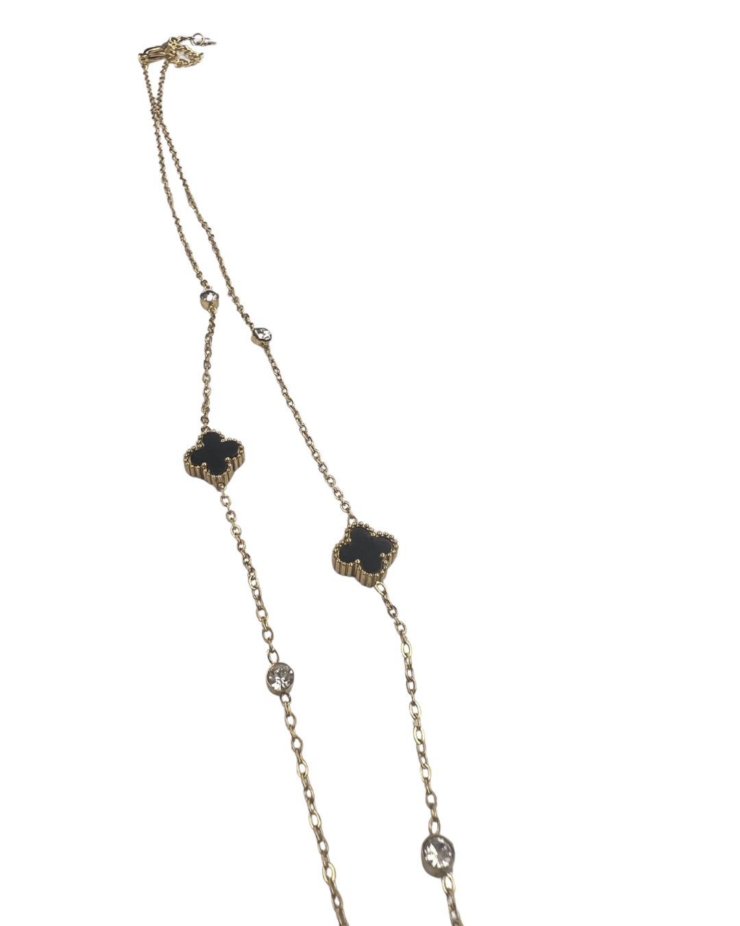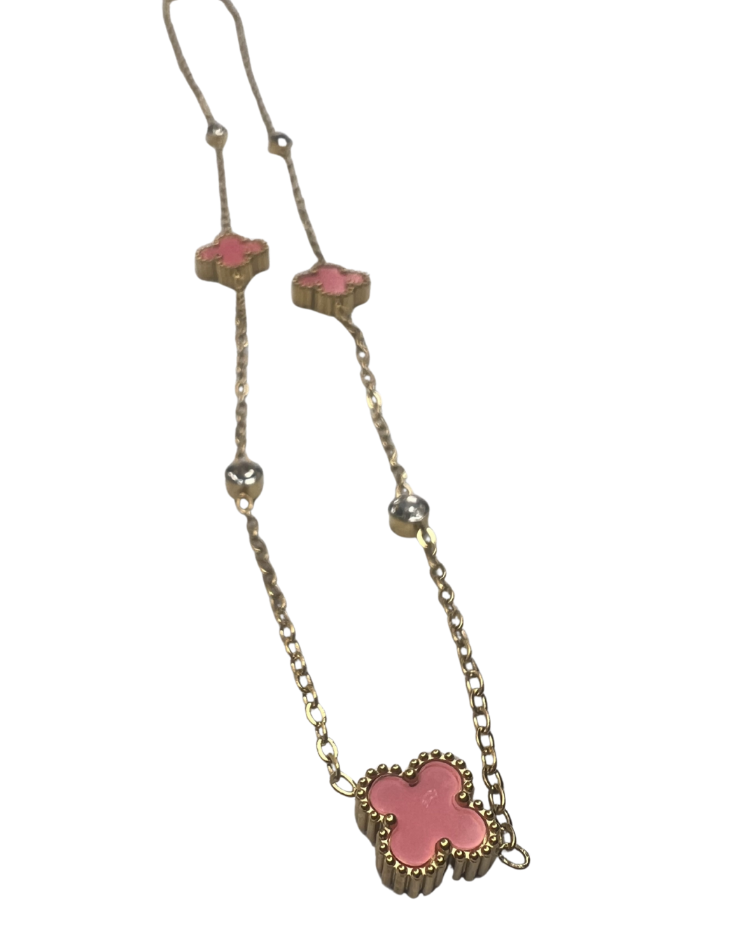 Elegant gold-tone chain necklace with clover-shaped pendant motifs in six unique color finishes.