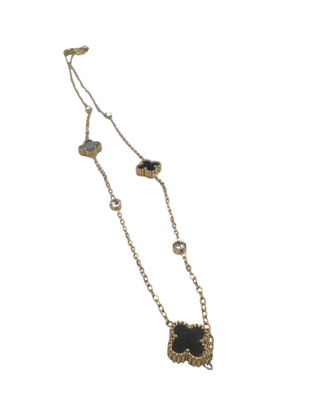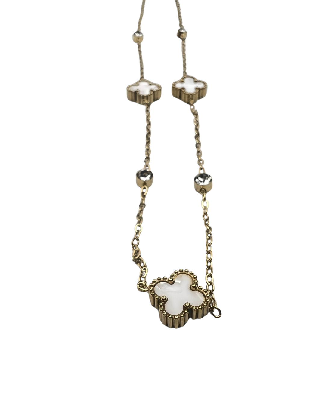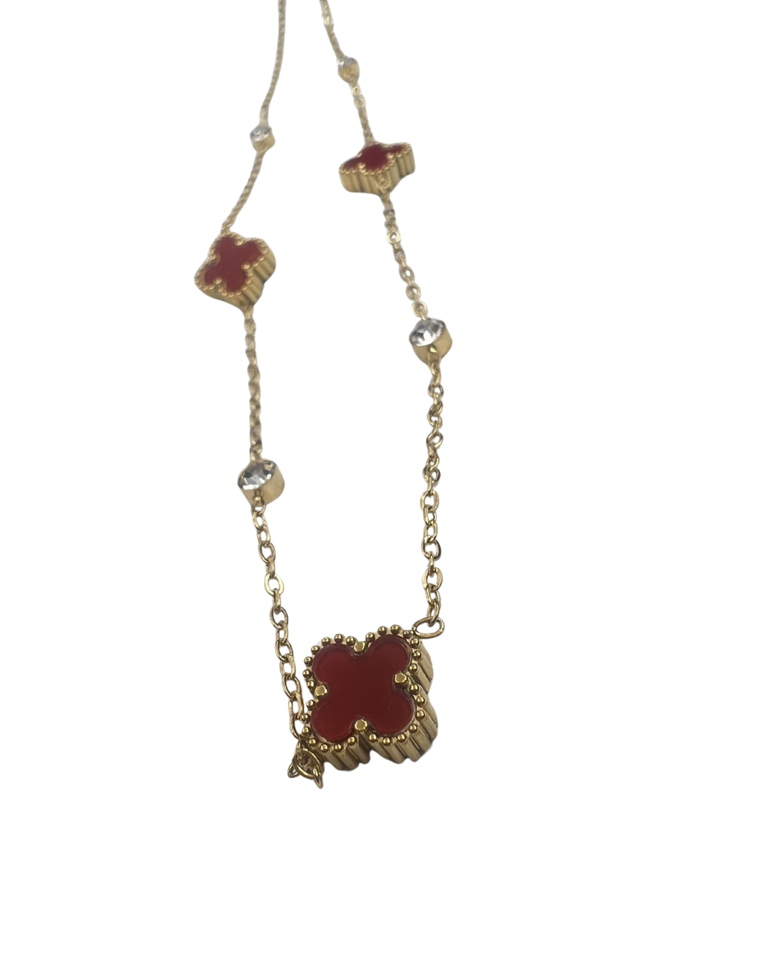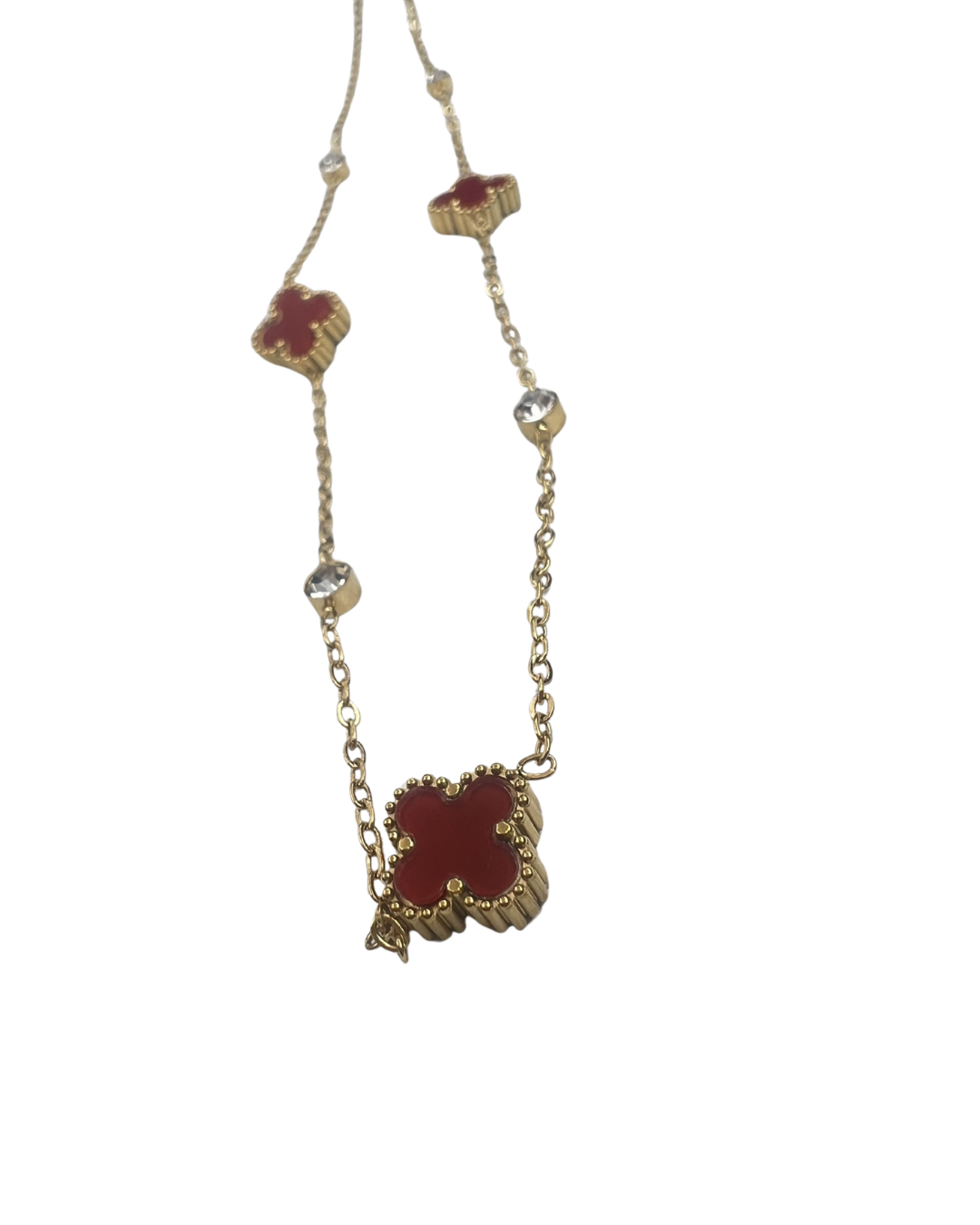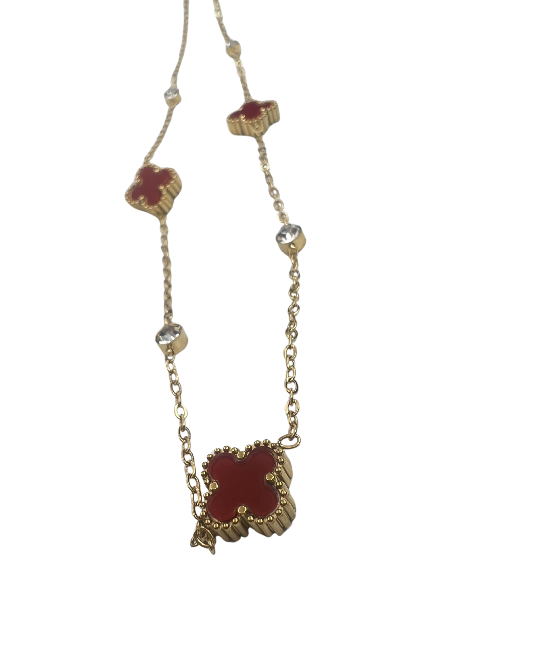 Elegant gold-tone chain necklace with clover-shaped pendant motifs in six unique color finishes.