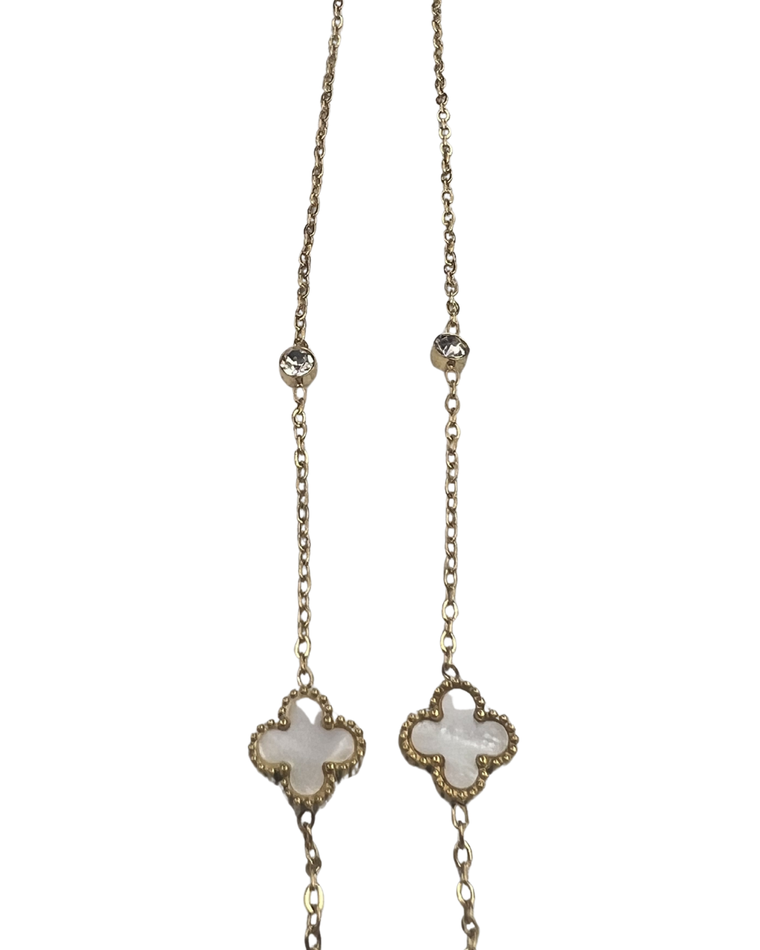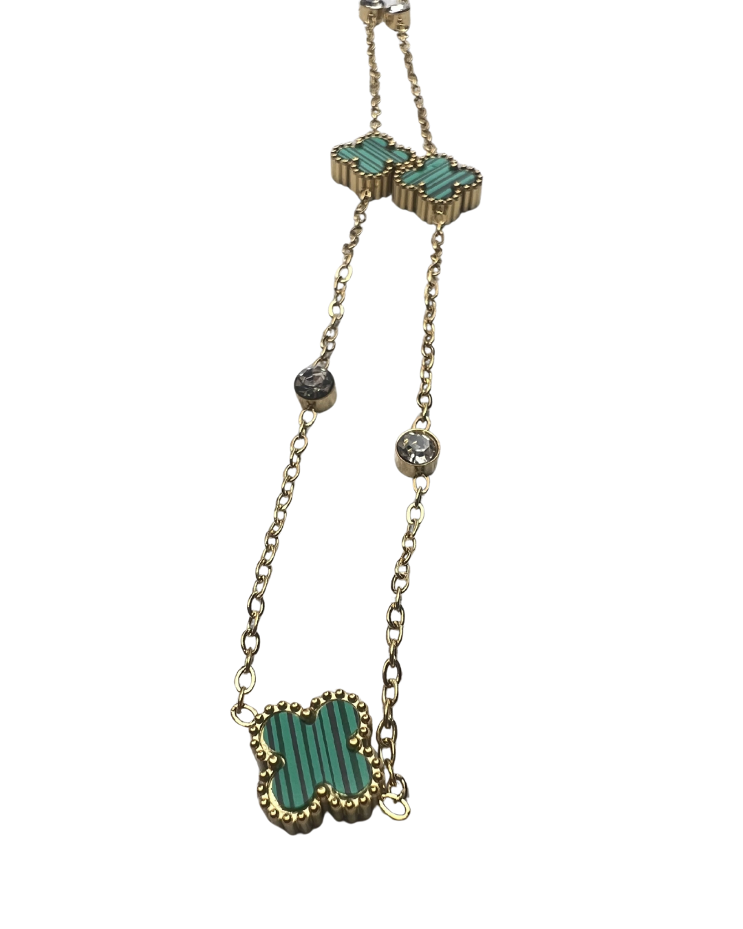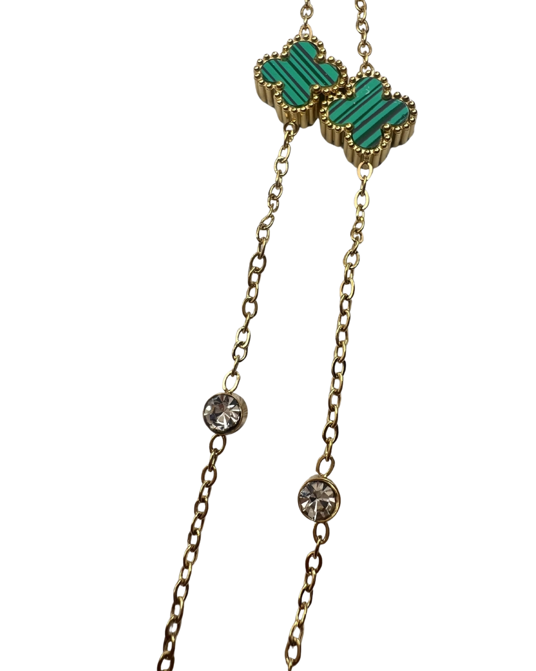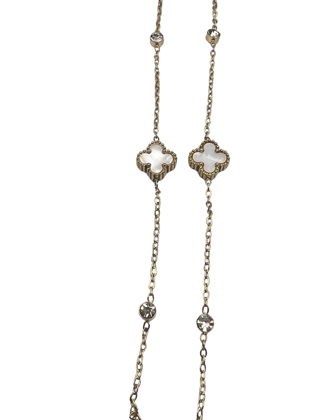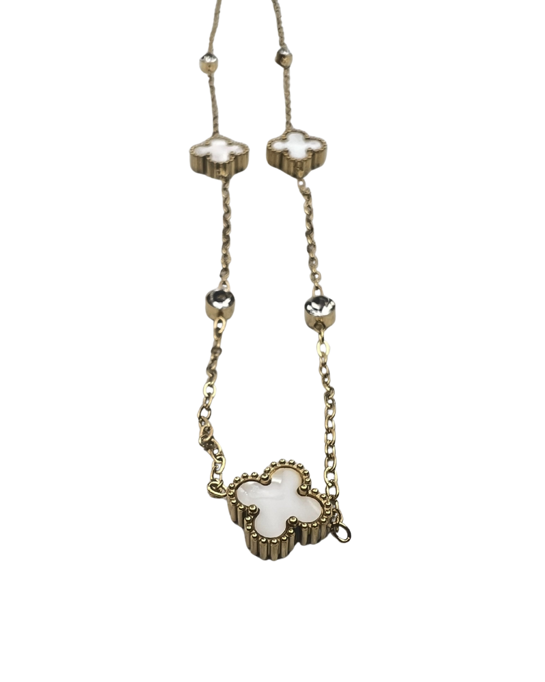 Elegant gold-tone chain necklace with clover-shaped pendant motifs in six unique color finishes.
