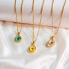 Elegant gold-tone chain necklace with clover-shaped pendant motifs in six unique color finishes.