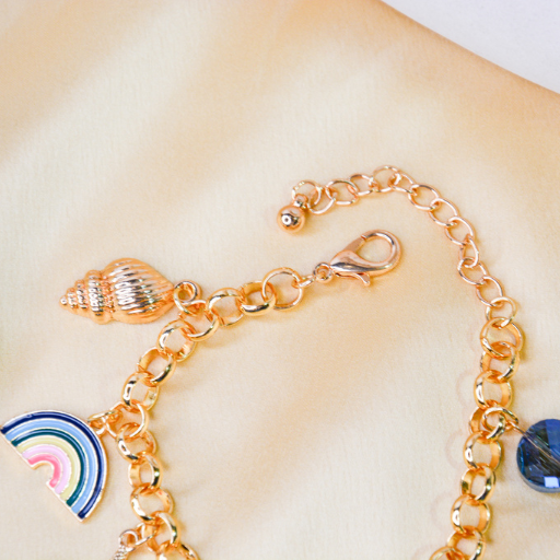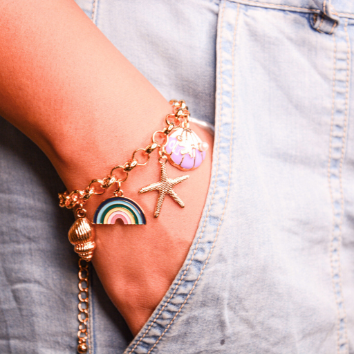 Crafted on a luxe gold-toned chain, this bracelet is lightweight, playful, and perfect for tropical vacations, brunch dates, and summer outfits. Pair it with the Coastal Dreamer Charmchain for a flawless matching aesthetic.