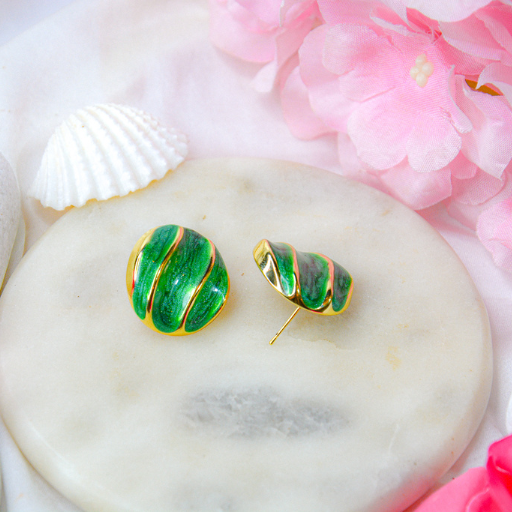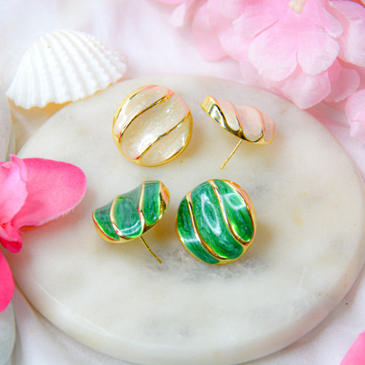 The CourtBall Duo Studs bring a playful yet luxurious twist to classic enamel studs. Designed with smooth spherical contours and gold-lined grooves reminiscent of a premium basketball aesthetic, these earrings combine sport-inspired boldness with Sheffè’s signature elegance. Available in Pearl White and Emerald Green, each variant offers a polished, glossy finish perfect for adding a fun, youthful, and stylish charm to your look.