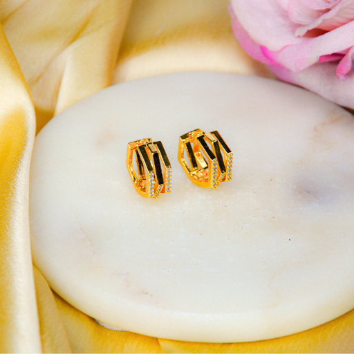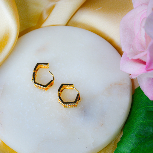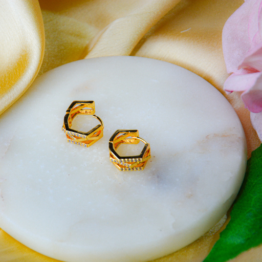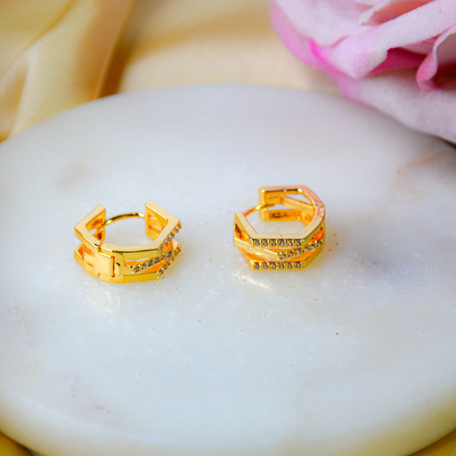 The Golden Prism Huggies blend geometric finesse with understated glamour. Designed in a structured prism-inspired form, these earrings feature clean angular lines softened by a row of micro-pavé crystals. Their polished gold shine makes them a versatile choice — minimal enough for everyday wear, yet elegant enough to elevate evening looks.