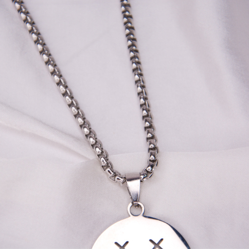 Edgy silver-tone chain with a grunge-style smiley pendant — bold, rebellious, and perfect for streetwear.