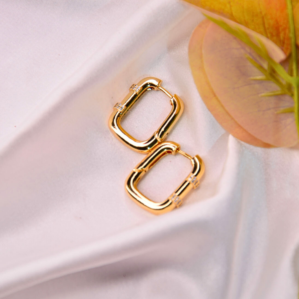 Their contemporary geometric shape balances strength and elegance, making them the perfect accessory for power dressing, cocktail soirées, or modern festive looks. Designed to be lightweight yet statement-worthy, these hoops are a true blend of luxury and versatility.
