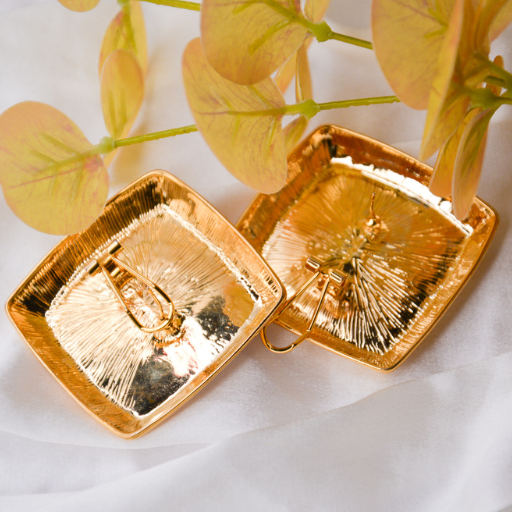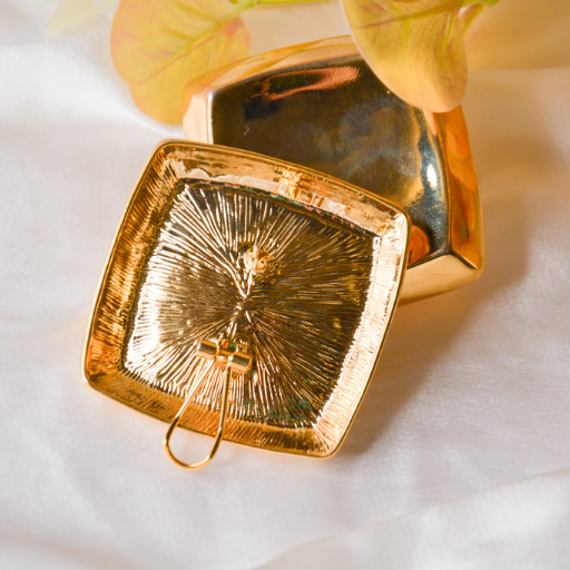 Polished gold‑tone square studs with soft sculpted edges — minimal, modern, and effortlessly luxe.